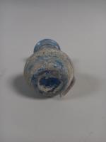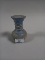 Un VASE en verre bleu, à triple anneaux sur le col avec traces de sédiments,...