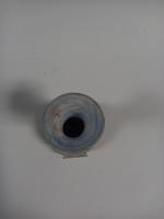 Un VASE en verre bleu, à triple anneaux sur le col avec traces de sédiments, dans le goût de l'Antique. H. 14 cm (accidents).
