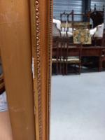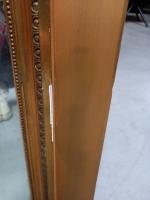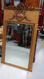 Un TRUMEAU en bois doré, fronton à décor d'un bouquet de fleurs signé A? BETTEMAIN ., style Louis XVI., époque 1900 142x78 cm (petits accidents notamment sur les coins et restaurations)