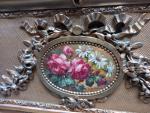 Un TRUMEAU en bois doré, fronton à décor d'un bouquet de fleurs signé A? BETTEMAIN...