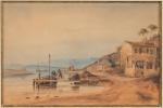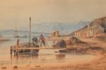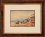 Vincent COURDOUAN (1810-1893). Paysage maritime animé, 1837. Aquarelle et gouache sur papier. Signé et daté en bas à...