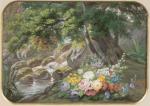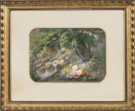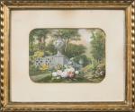 Jules GAYET (1826- ?). En pendant : -Fleurs au bord de la rivière -Fleurs dans un parc. Deux...
