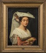 Ecole italienne de la fin du XIXème siècle. La belle Italienne à la coiffe et au...