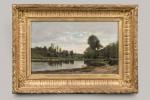 Horace FONVILLE (1832-1914). Troupeau au bord de l'étang. Huile sur toile. Signé en bas à droite. 32...
