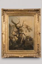 Rudolf KOLLER (1828-1905). Deux personnages près d'un vieil arbre, 1851. Huile sur toile. Signé et daté en...