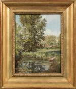 Jules GAUD (1848-1912). Paysage à l'étang. Huile sur toile. Signé en bas à droite. 35 x 27 cm. Restauration ancienne OH