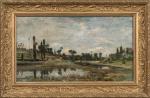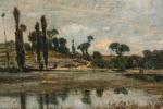 Adolphe APPIAN (1818-1898). Arbres au bord de l'eau. Huile sur toile. Signé en bas à droite. 37,5 x 67 cm. OH