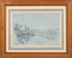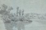 François Auguste RAVIER (1814-1895). Bord de l'Ain à Poncin. Crayon, plume et lavis d'encre sur...