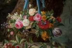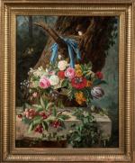 Ecole lyonnaise de la deuxième moitié du XIXème siècle. Composition florale à l'écureuil, 1859. Huile sur toile. Signé...