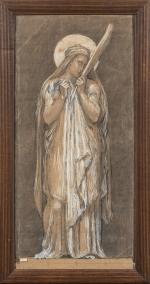Paul BOREL (1828-1913). Sainte Lydie, étude préparatoire, 1900. Fusain et gouache sur papier bistre avec...