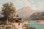 Emile GODCHAUX (1860-1938). Rivière en montagne. Huile sur toile. Signé en bas à gauche. 46 x 65 cm. OH