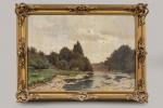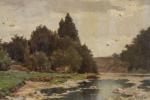 Jules RIDET (1847-1918). Bord de rivière. Huile sur toile. Signé en bas à droite. 46 x 65 cm. OH