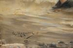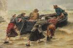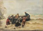 Georges Jean Marie HAQUETTE (1854-1906). Embarquement des pêcheurs dans la chaloupe "Pilote Dieppe'' par gros temps....