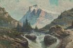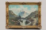 Alexandre François BONNARDEL (1867-1942). Torrent en montagne. Huile sur toile. Signé en bas à droite. 46 x 65 cm. OH