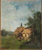 Eugène GALIEN-LALOUE dit LIEVIN (1854-1941). En pendant : -Fermière nourrissant sa basse-cour. Huile sur toile. Signé en bas à...