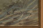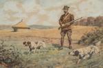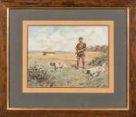 Charles Fernand de CONDAMY (1855-1913). Chasseur et ses deux chiens levant des faisans. Aquarelle sur...