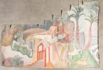 Louis BOUQUET (1885-1952). Le jardin d'éden. Huile sur toile découpée (fragment), sans châssis. 229 x 310...