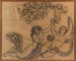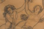 Deux femmes nues et cinq angelots dans le ciel, étude préparatoire pour le hall d'entrée du Palais Bondy à Lyon.