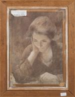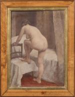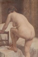 Léon GARRAUD (1877-1961). Femme nue de dos penchée, le pied sur une chaise (Jeanne) 1927. Détrempe...