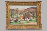 Gaston BALANDE (1880-1971). Paysage de printemps. Signé en bas à droite. Huile sur papier contrecollé sur toile. Signé en...