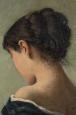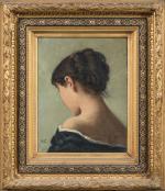 Ecole française de la fin du XIXème siècle-début du XXème siècle. Nuque d'une jeune femme. Huile...