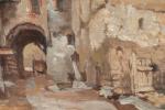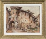 Charles CATTEAU (1880-1966). Vue d'une maison médiévale dans un village. Huile sur toile. Signé en bas à droite. 33 x 41 cm. OH