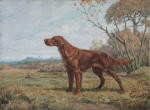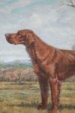 Jacques CARTIER (1907-2001). Le setter irlandais. Huile sur toile. Signé en bas à gauche. 74 x 100 cm. Petits accidents et craquelures. OH