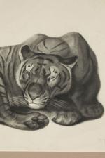 Georges Guyot (1885-1973) « Tigre couché » Lithographie sur papier encadrée. Signée. H. 24 cm L. 32...