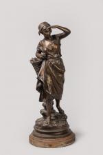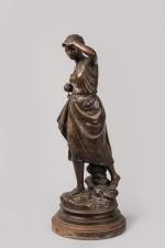Eugène Laurent (1832-1898) « La fermière » Sujet en bronze à patine brune nuancée. Signé. H. 60 cm TR