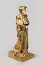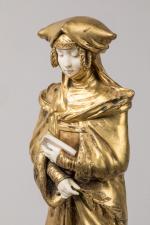 Sujet en bronze doré et ivoire. Petites usures et piqures à la patine. Signé. H. 45 cm