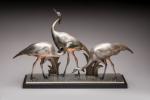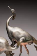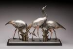 Andras Sinko (1901-1976) « Les ibis » Groupe en bronze à patine argentée sur socle en marbre...