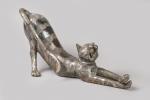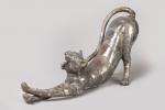 Christian Maas (né en 1951) « Chat s'étirant » Sujet en bronze à patine noire. Marqué. H. 38 cm L. 85 cm TR