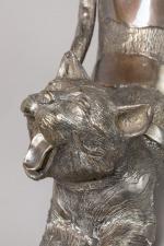 Sujet en bronze à patine noire. Marqué. H. 38 cm L. 85 cm