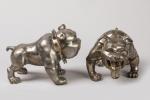 Deux sujets en bronze argenté. H. 14 cm L. 22 cm