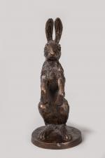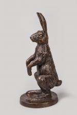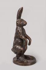 Christian Maas (né en 1951) « Lapin dressé » Sujet en bronze à patine brune. Marqué. H. 45 cm TR