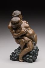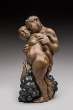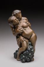 Kay Nielsen (1882-1924) « Faune et femme » Groupe en céramique polychrome. Signé et marqué Bing et Grondahl. H. 20 cm TR