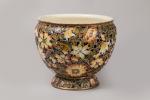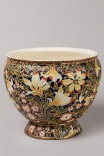 Zsolnay Important cache-pot en céramique polychrome à décor en léger relief de fleurs luxuriantes. Marqué en...