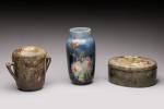 Ensemble de trois barbotines, un vase, une bonbonnière et un...