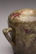 Montigny-sur-Loing Ensemble de trois barbotines, un vase, une bonbonnière et un pot couvert. Signés. H. 17...