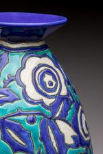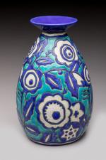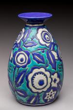 Keramis Vase de forme ovoïde à col ouvert en céramique polychrome à décor floral stylisé...