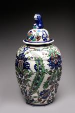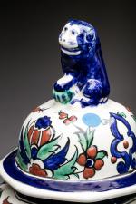Pot couvert de style oriental à décor polychrome inspiré de...