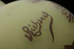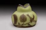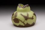Richard Vase pansu à col ourlé en verre gravé à l'acide à décor floral brun sur fond vert. Petit défaut de cuisson. Signé. H. 8 cm TR