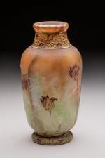 Daum Vase de forme bombée à petit col ourlé en verre gravé et émaillé polychrome...