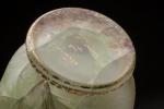 Vase de forme bombée à petit col ourlé en verre gravé et émaillé polychrome et doré à décor floral sur fond gris vert givré. Signé. H. 9,5 cm