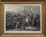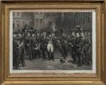 - Adieux de Fontainebleau (20 avril 1814, d'après Horace Vernet. A vue : 82 x 107 cm. Piqûres, mouillures.