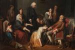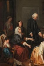 École FRANCAISE vers 1830 La mort de Benjamin Franklin Sur sa toile d'origine 71 x 90,5 cm. Craquelures. RM
