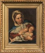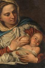 ECOLE ITALIENNE du XVIIIème siècle Vierge allaitant Toile 40,5 x 32 cm Rentoilé, restaurations. RM