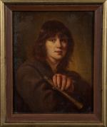 ECOLE HOLLANDAISE de la fin du XIXème siècle Le joueur de pipeau Cuivre 16 x 12,5 cm. Porte une...