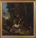 Ecole HOLLANDAISE du début du XIXème siècle, dans le goût de Jan WEENIX Coqs, poules et...