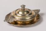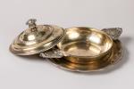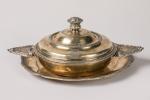 ECUELLE couverte et son plateau festonné en vermeil, à décor...
